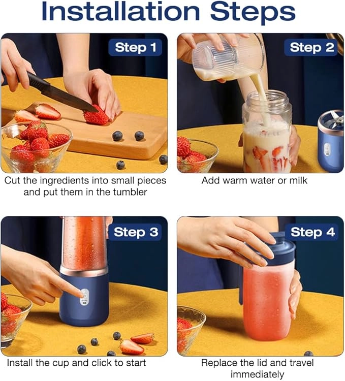 বড় বড় কিচেন অ্যাপ্লায়েন্সের ঝামেলা শেষ! Yuehuamech পোর্টেবল ব্লেন্ডার দিয়ে আপনি উপভোগ করুন তাজা ব্লেন্ড করা পানীয়ের আনন্দ, সারা দিনে শক্তি ও স্বাস্থ্য বজায় রাখুন।
