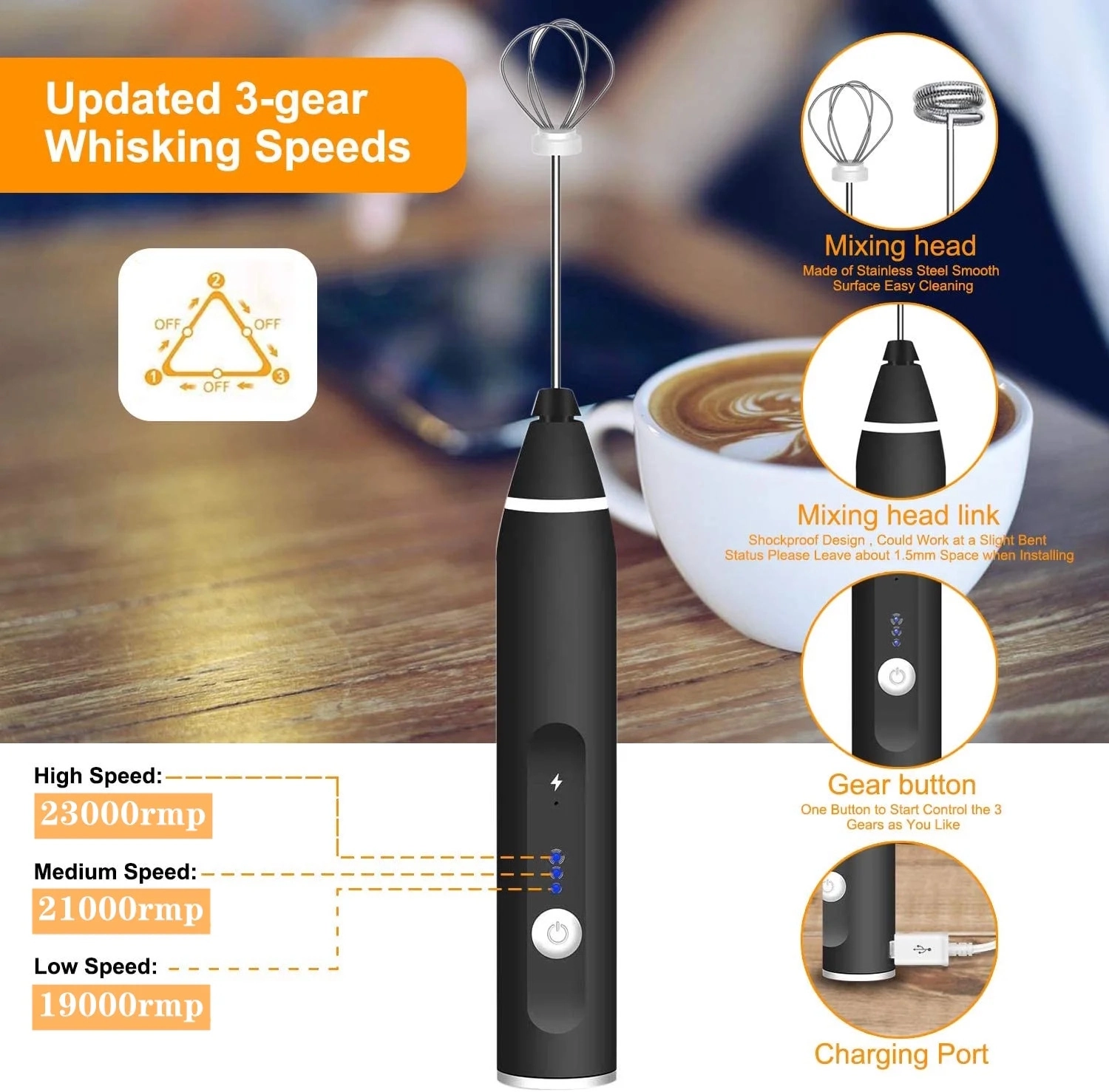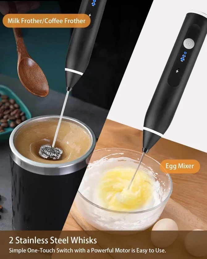 ছাড়Rechargeable Milk Frother & Egg Beater – USB Powered 3-Speed Electric Hand Mixer for Coffee, Cappuccino, Latte & Baking